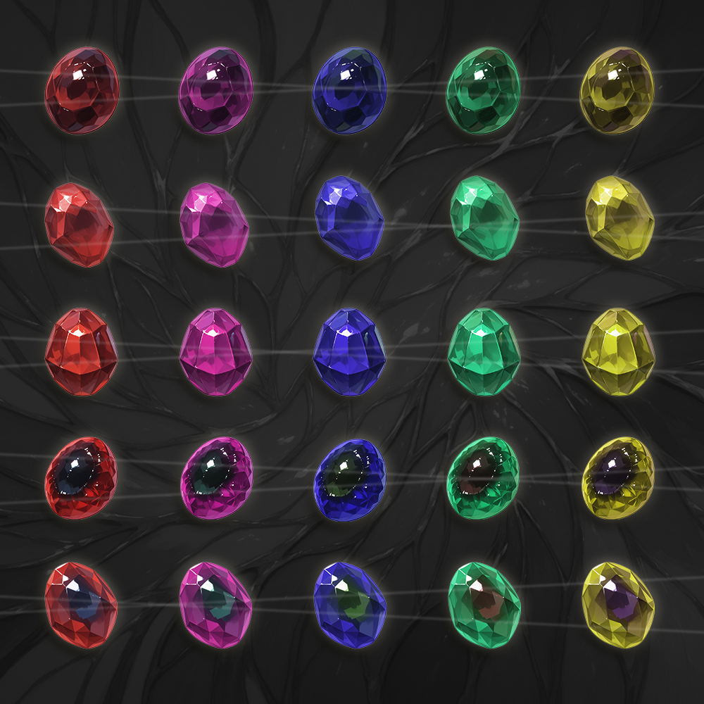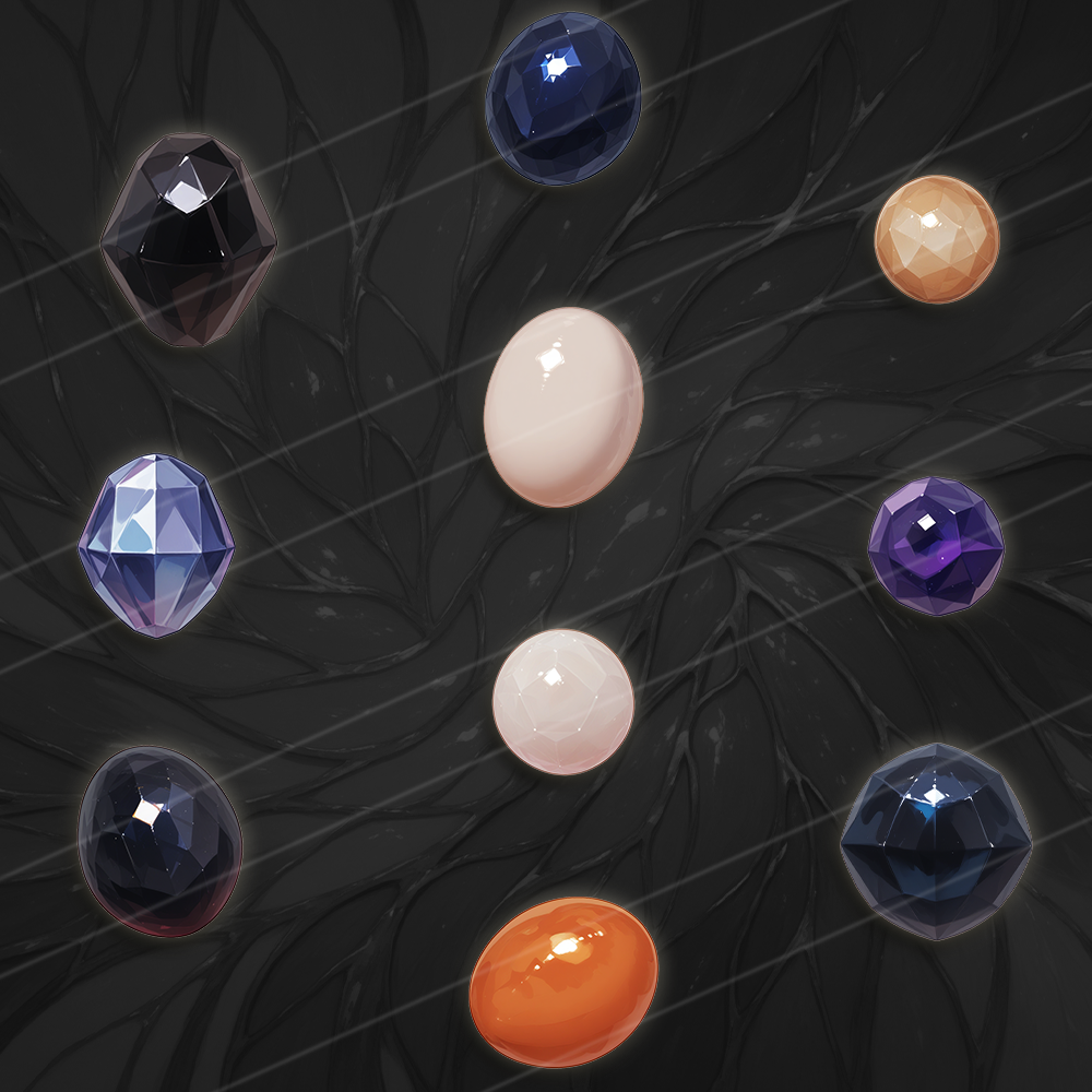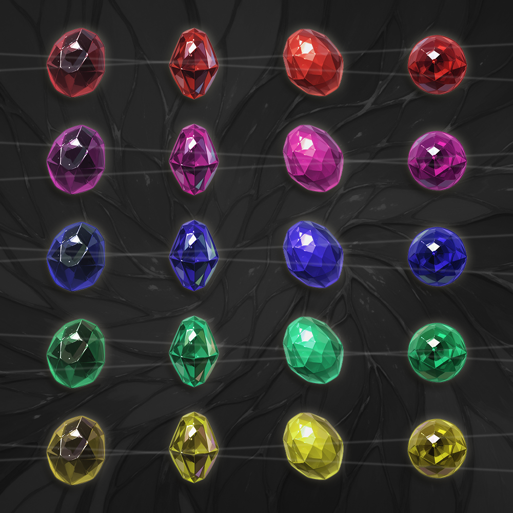 There is 19 total variants of Gemstones, 1 to 10 are singles while 11 to 19 have 4 color variants each, resulting in 55 images in total. ( they are all in the screenshots )